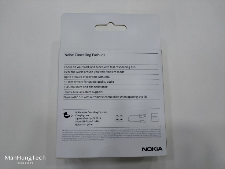 包裝盒正面,設計與 Nokia Power Earbuds Lite、Nokia Lite Earbuds 接近