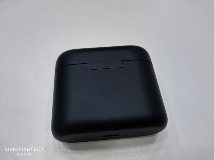 USB 充電孔位於底部,充電時必須反轉收納盒。旁邊是重設鍵,按一下可顯示電量,長按四秒則重設耳機,千萬不要多手玩弄喔