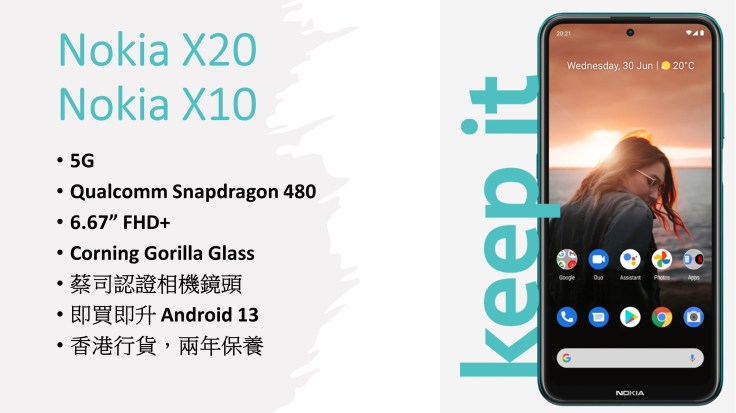這兩款手機原價二千元以上,當中 Nokia X20 原價接近三千元。香港行貨附兩年保養,可見最新優惠價非常吸引,憑性價比挑戰其他千元級別 5G 手機,也是市面上難得一見採用高通處理器的千元 5G 電話,更可以即買即升最新 Android 13 系統。