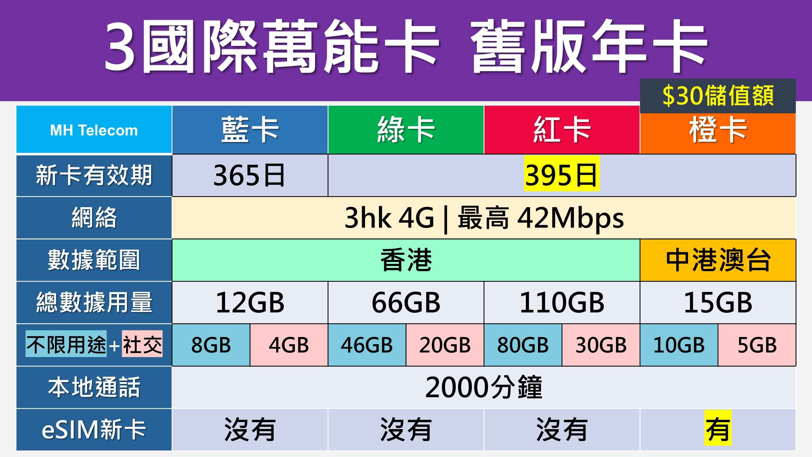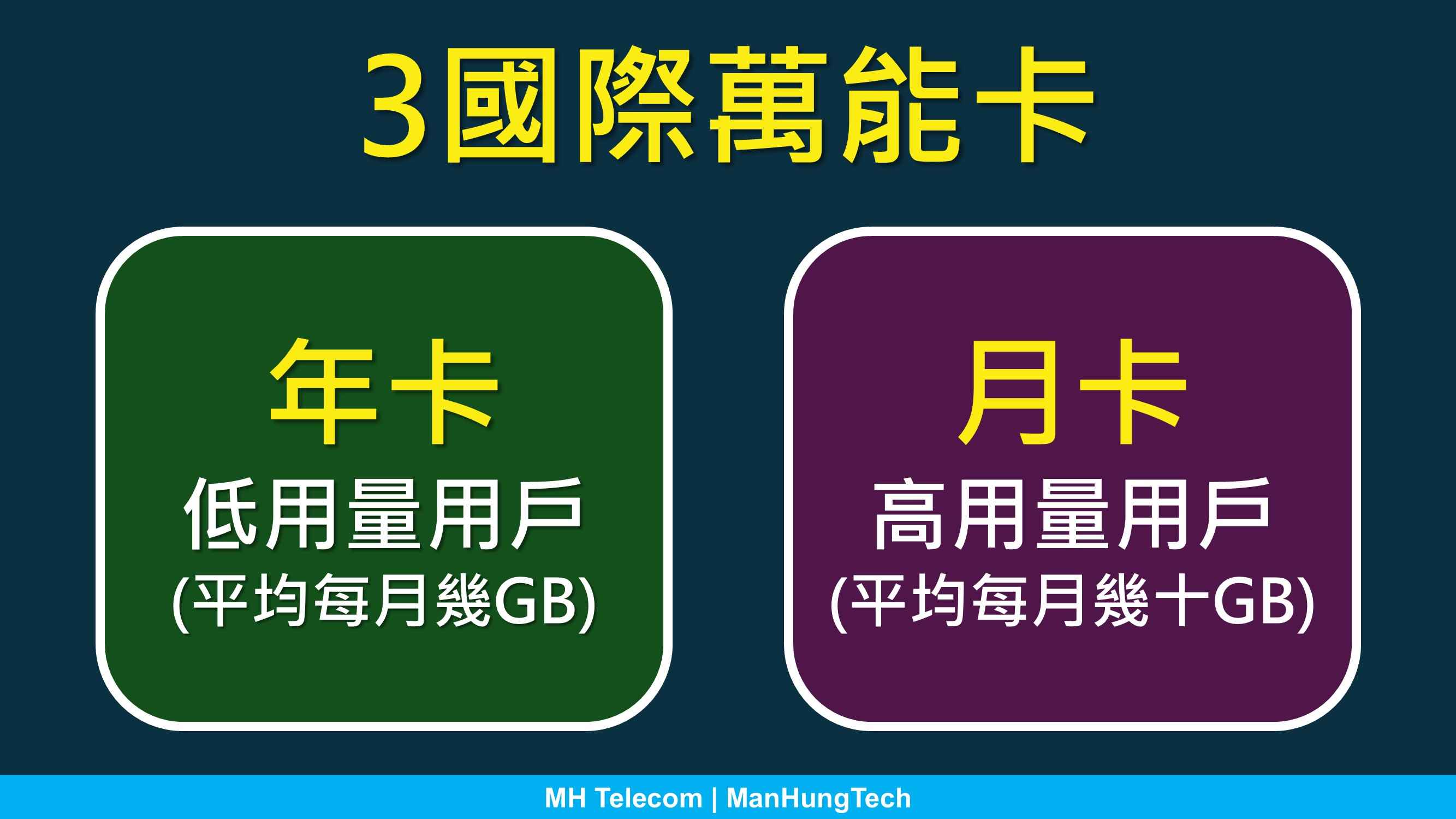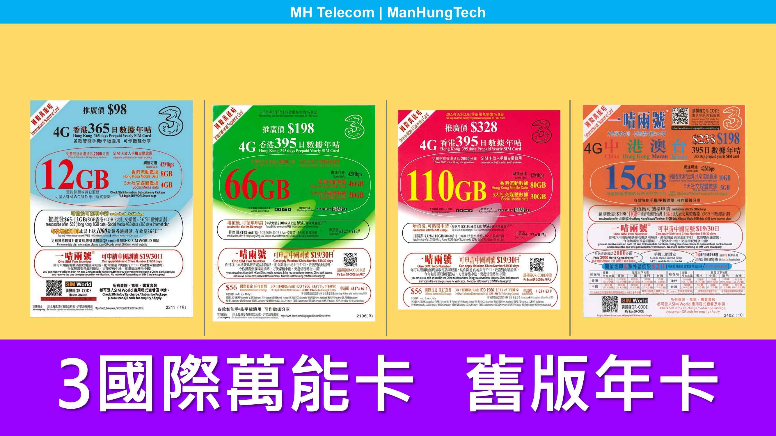 本文為3國際萬能卡懶人包,集合所有卡種介紹、優點、缺點、MNP 轉台、eSIM、增值續期等資訊,並附上相關詳細解說影片,包羅萬有,務求為大家送上最新、最周詳資訊,一貫 MH Telecom 精益求精之精神。