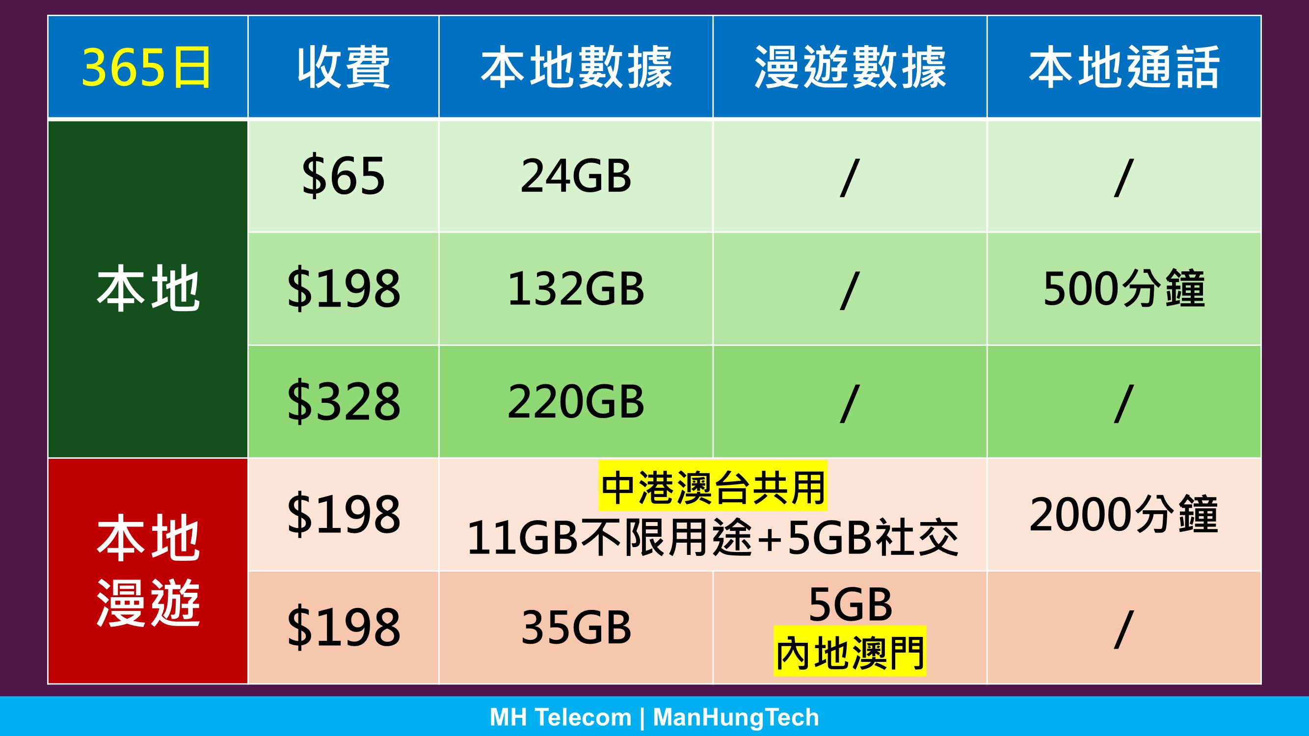 (ManHungTech、MH Telecom 僅分享電訊服務資訊,並不確保實際服務質素及體驗)