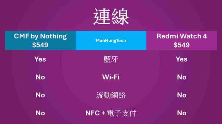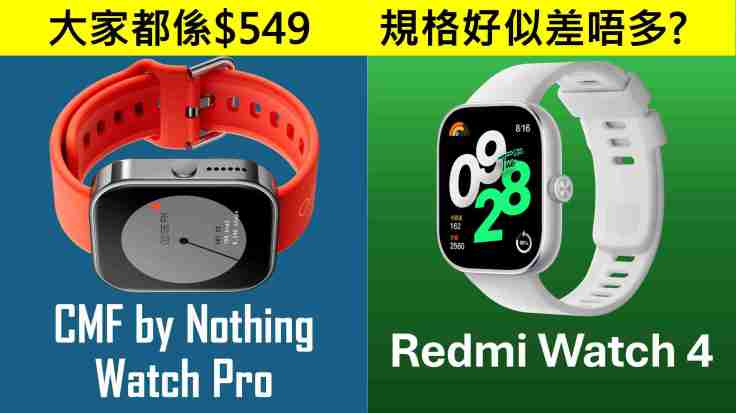 上一篇文章比較了 Samsung Galaxy Fit3、紅米 Redmi Watch 4 兩款價格相近的平價智能手錶,首作反應甚佳,同時有讀者問及同期推出的 CMF by Nothing Watch Pro (Nothing Watch Pro / CMF Watch Pro) 價錢與紅米一模一樣,應該如何選擇。不如基於上次比較的模式,乘勢比較這兩款定價一樣、直接競爭之產品。