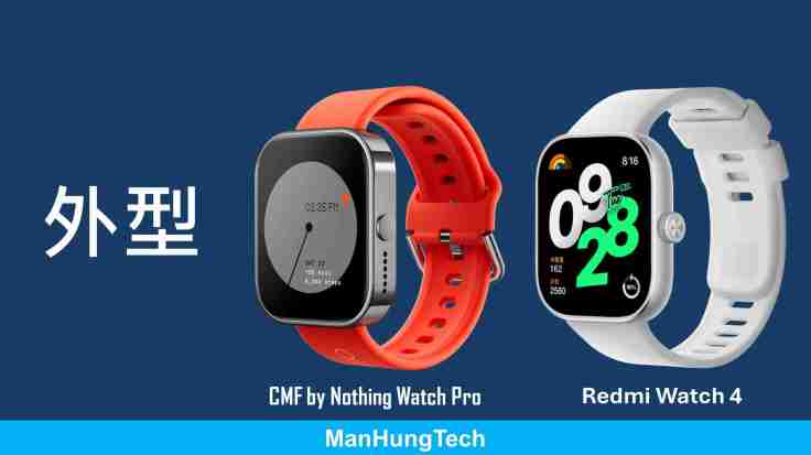 雖然兩款手錶同樣採用鋁合金外框,不過錶身設計風格大有不同,Nothing 機身外型較為陽剛,Redmi Watch 4 則偏向圓滑。