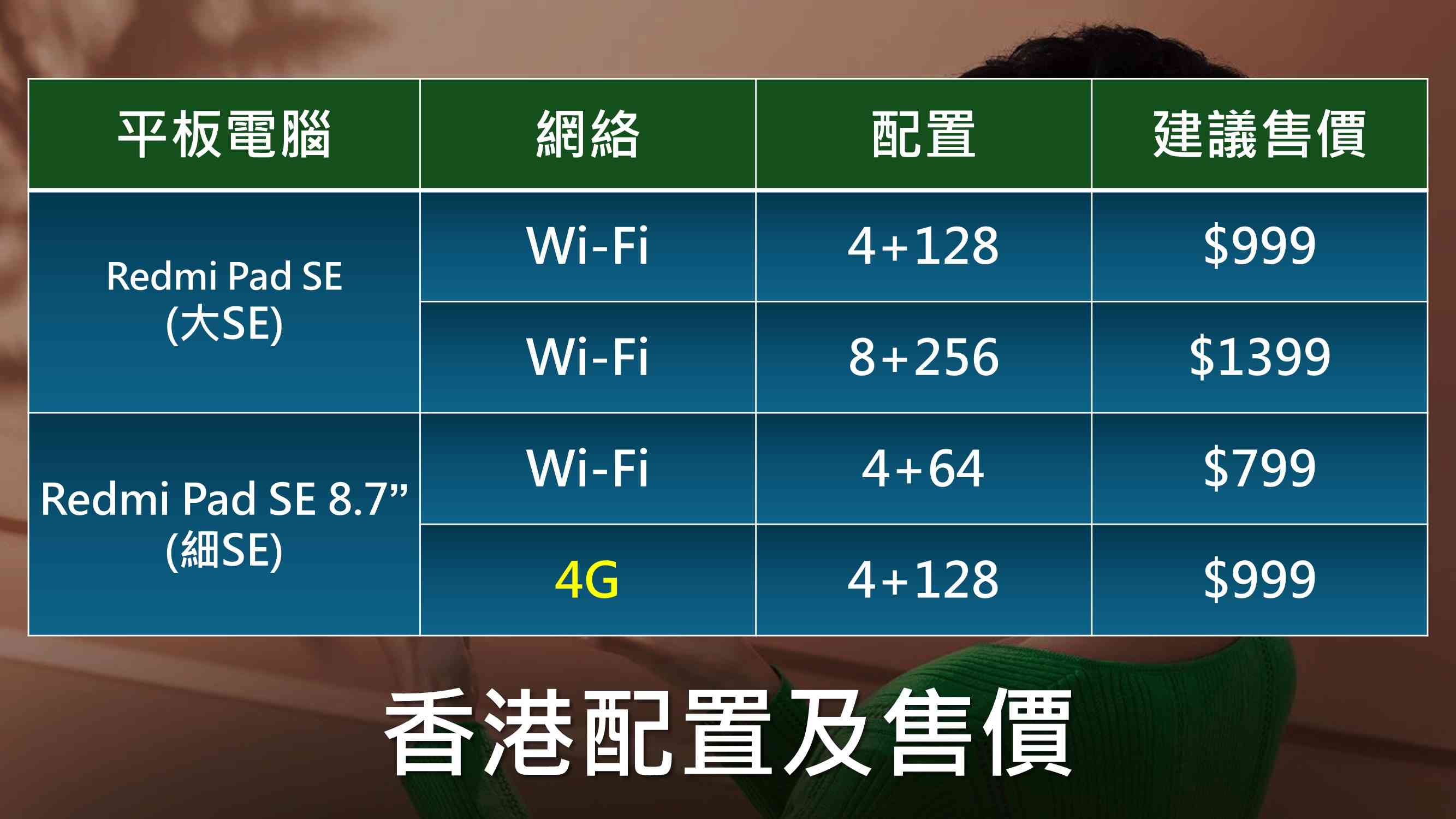只有 Redmi Pad SE 8.7 提供 4G LTE 流動網絡版本