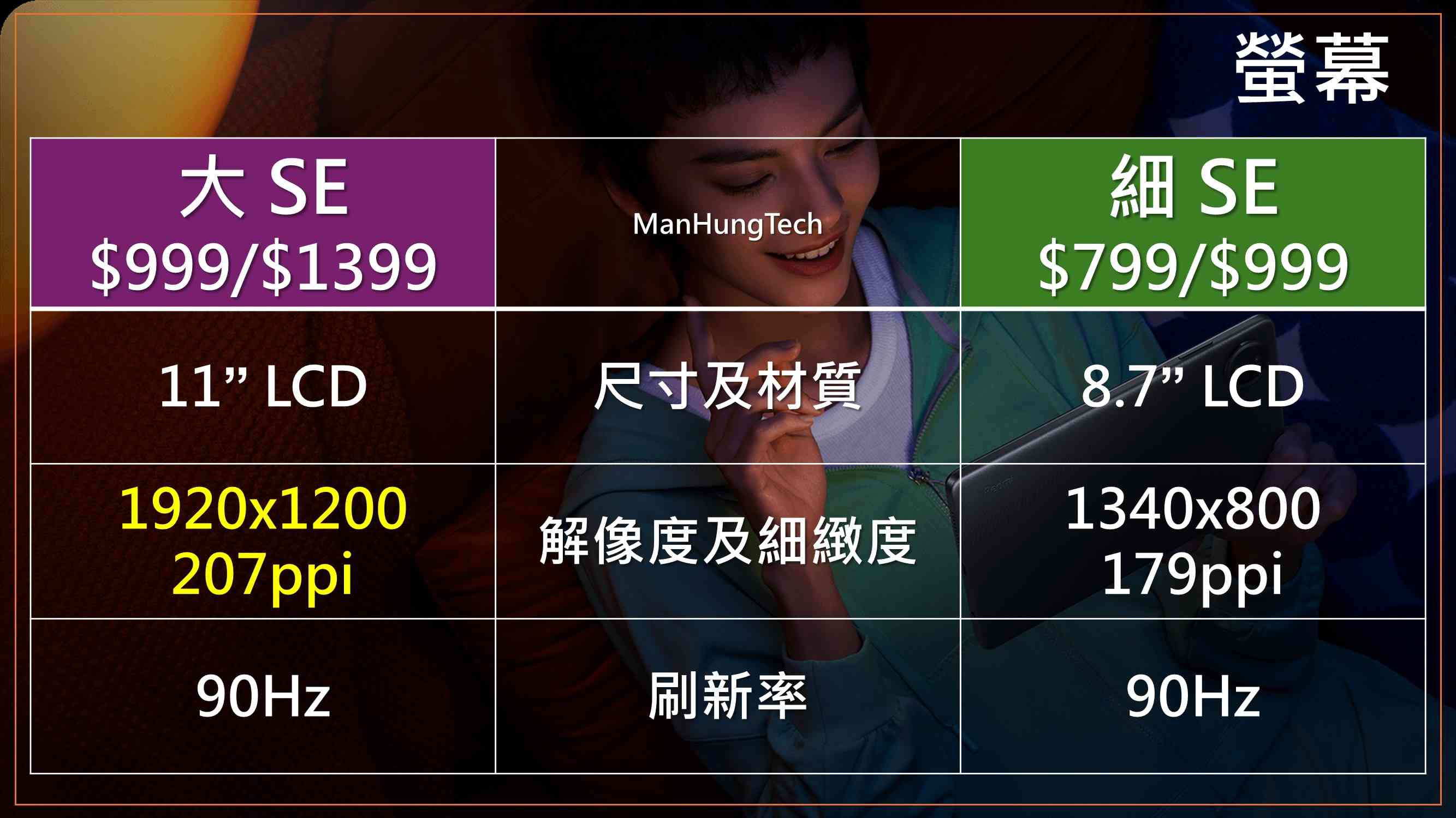 屏幕面積為兩款產品最主要分別,不過 Man 著眼處在於顯示解像度及細緻度,因為此乃 Redmi Pad SE 8.7 最大缺點,無非成為慘輸 Redmi Pad SE 之處,建議購買前三思。
