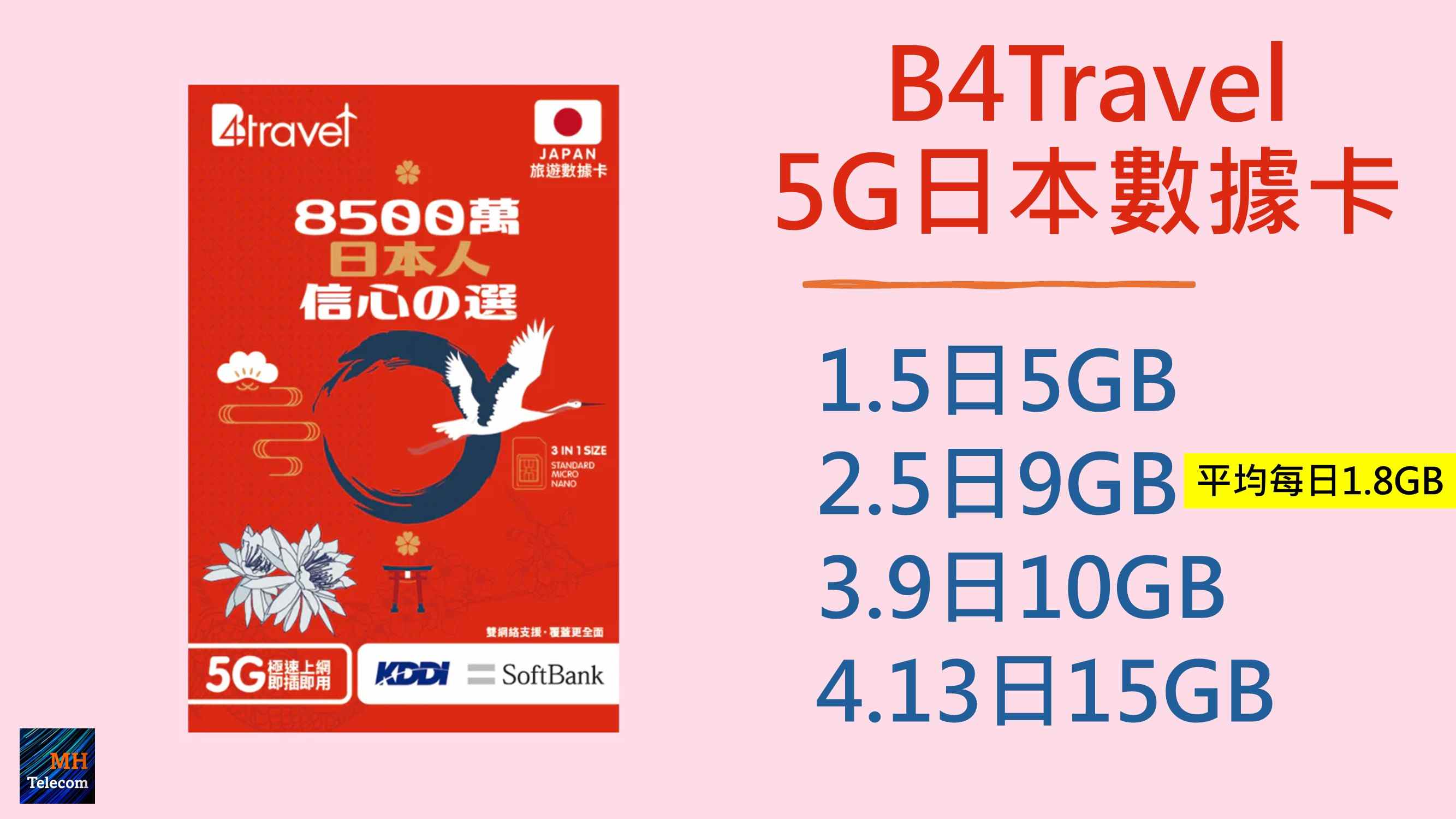 本站不時介紹外遊電話卡,不過今回懶人包選卡準則絕對是有史以來最嚴格,不但提供日本 5G 漫遊數據講求速度,而且做到雙 5G 網絡覆蓋,務求速度、覆蓋、用量三者俱備,適合對外遊上網質素有要求的消費者。一直以來 MH Telecom 精益求精,不論本地還是外地電訊服務,希望各位用得開心又稱心。