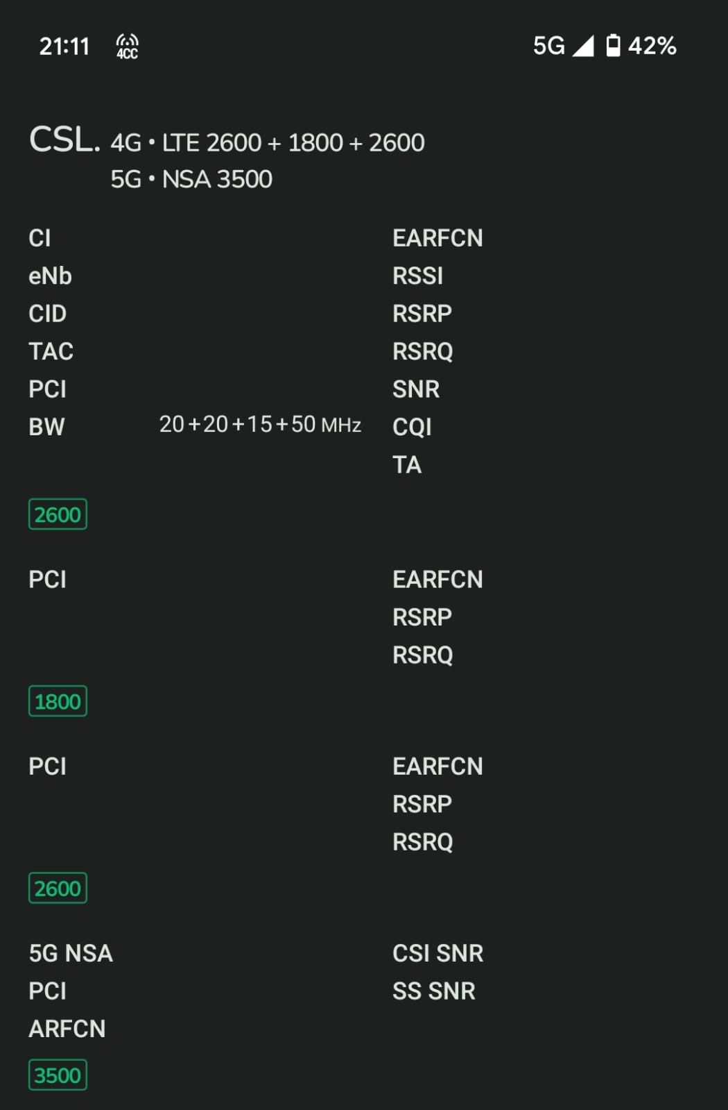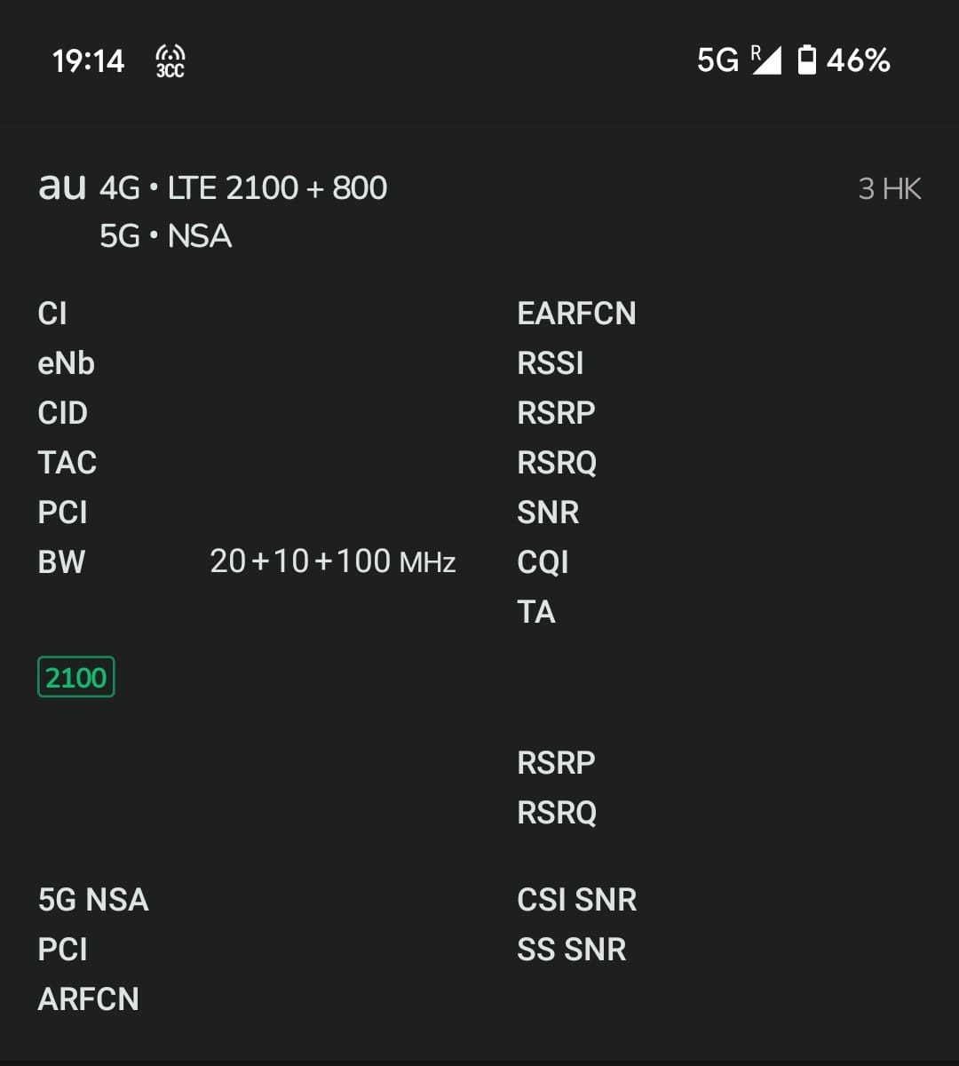 - 現時未能使用 csl. 5G SA 網絡,只有 NSA