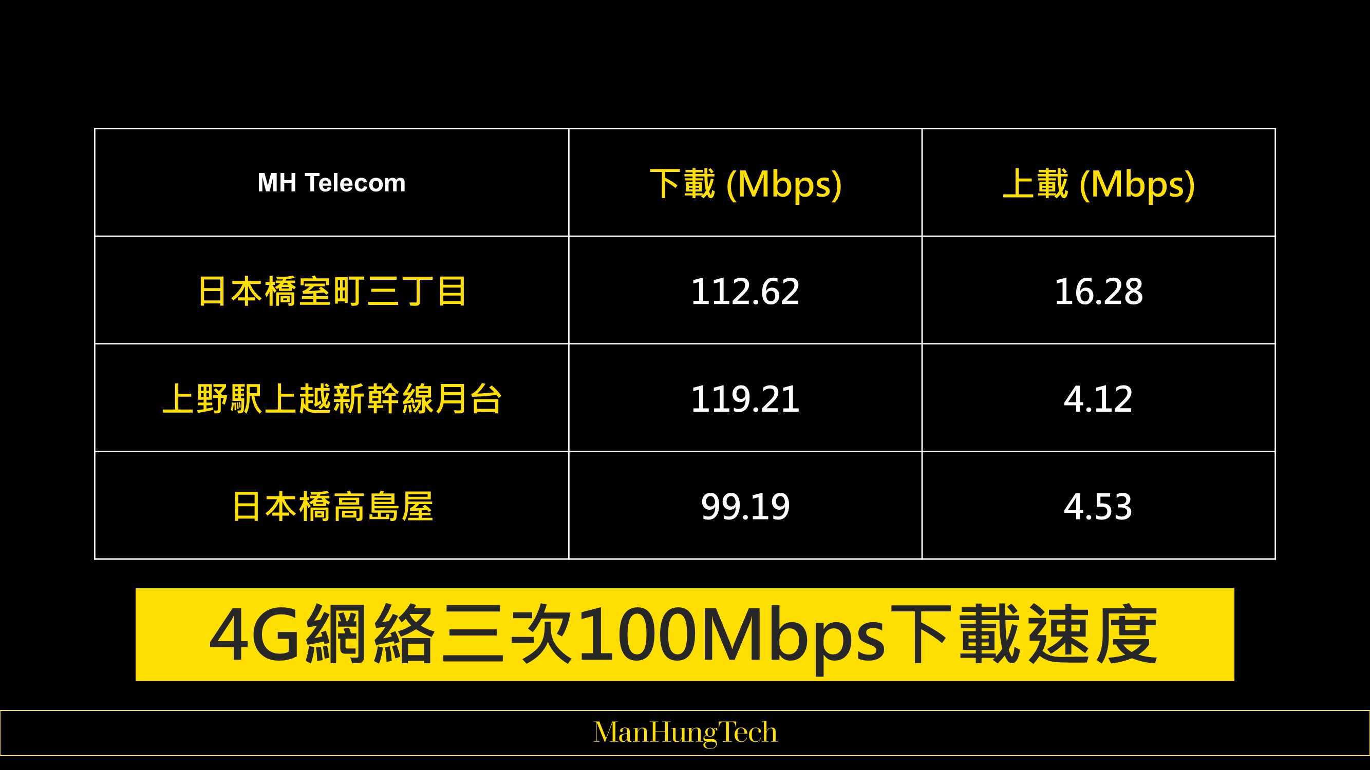 | MH Telecom | 下載 (Mbps) | 上載 (Mbps) |