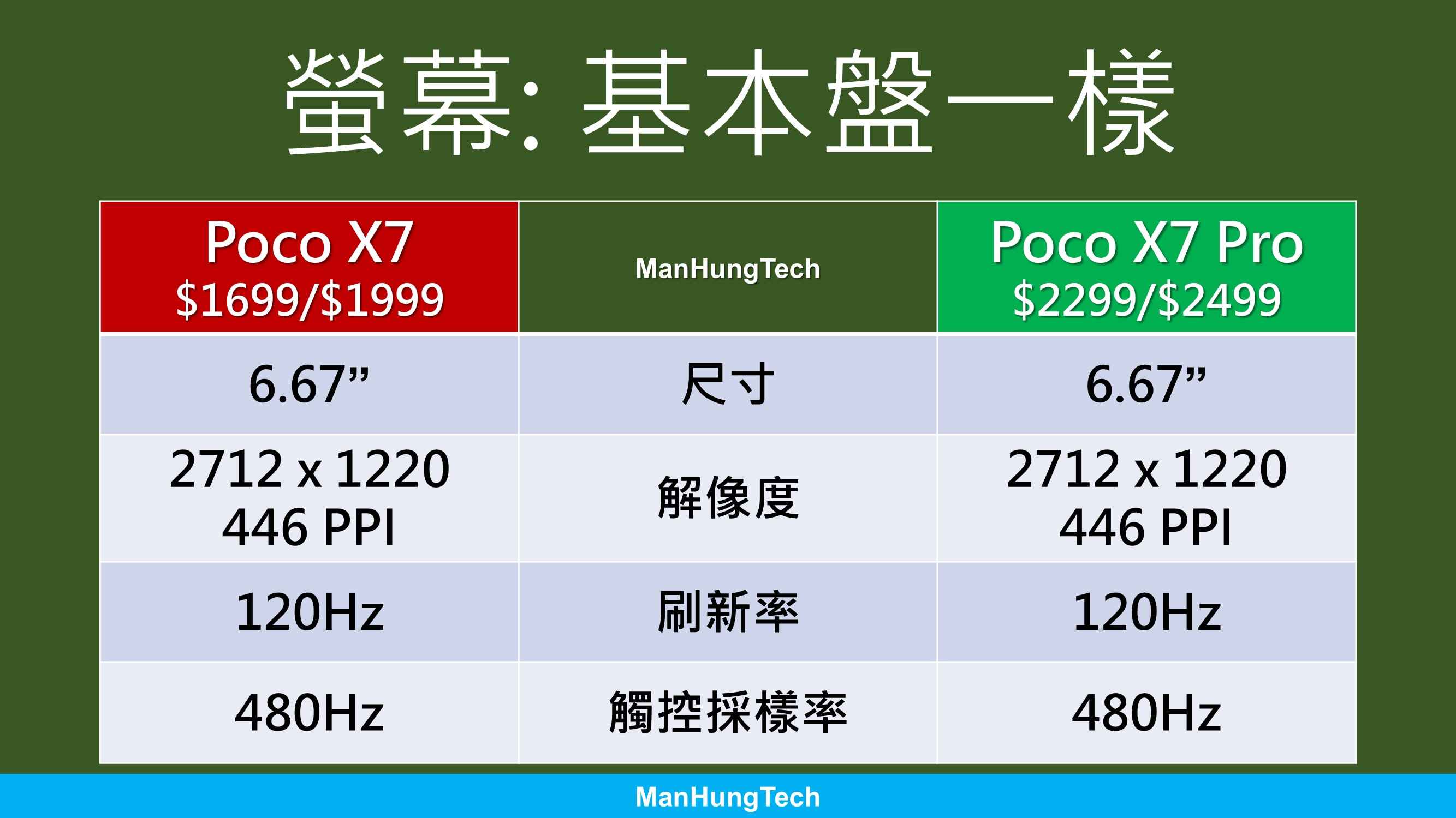 Poco X7、Poco X7 Pro 規格比較及買機分析