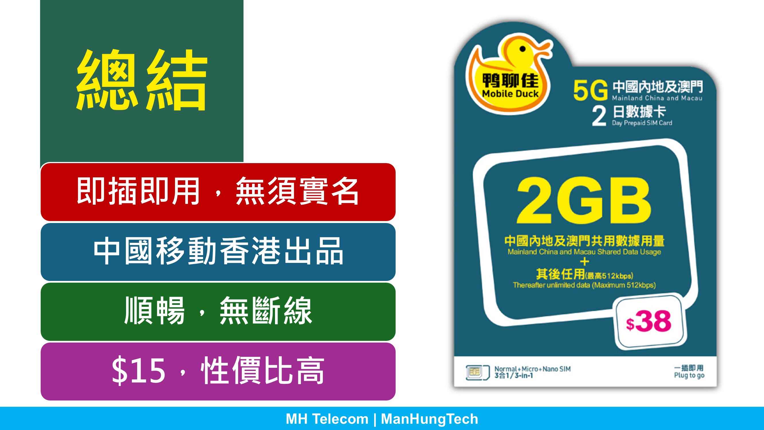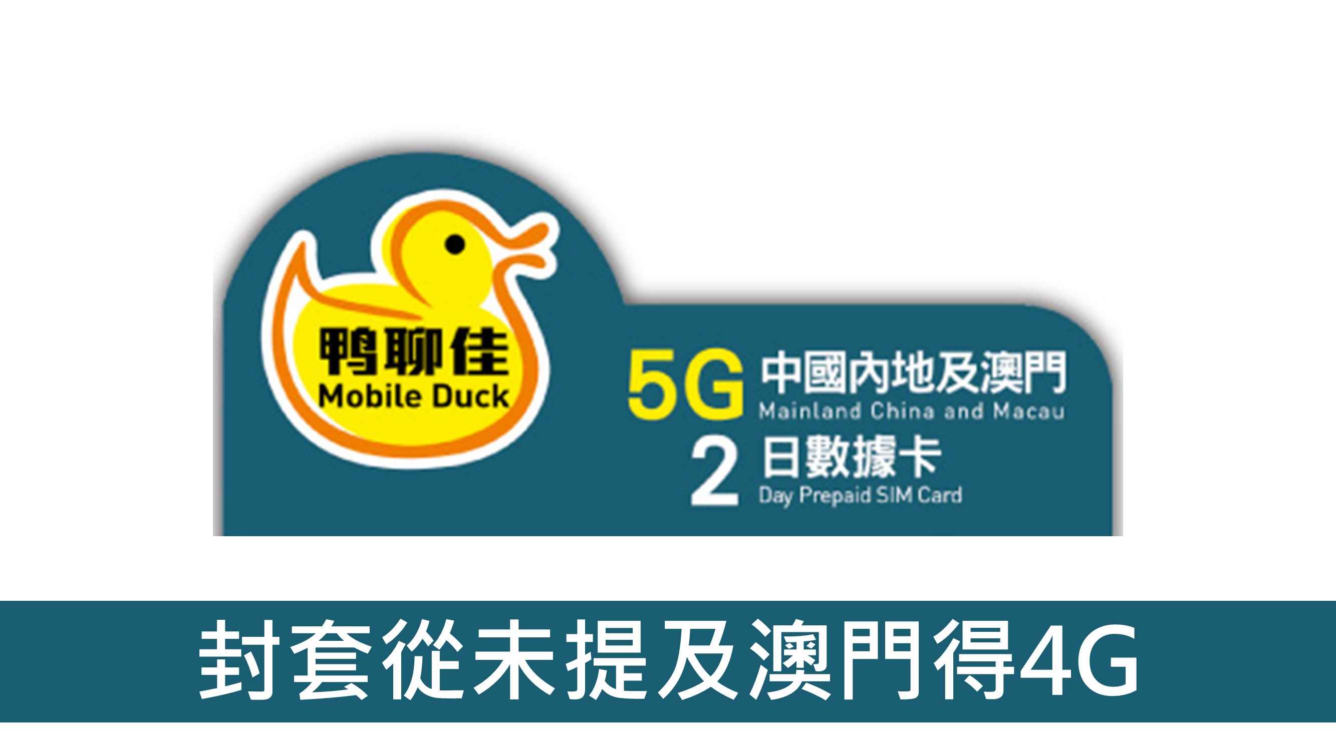 - 鴨聊佳 中國內地及澳門 5G 2日數據卡