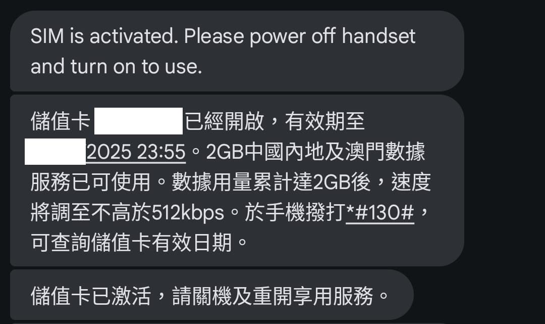此卡不設香港本地服務,插卡後無法連接任何香港網絡,手動連線到中國移動香港亦失敗,遇此情況切勿誤會壞卡。由此可見,非雙卡機用戶不宜過早換卡。