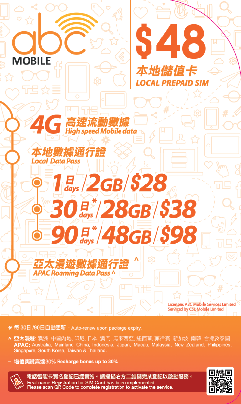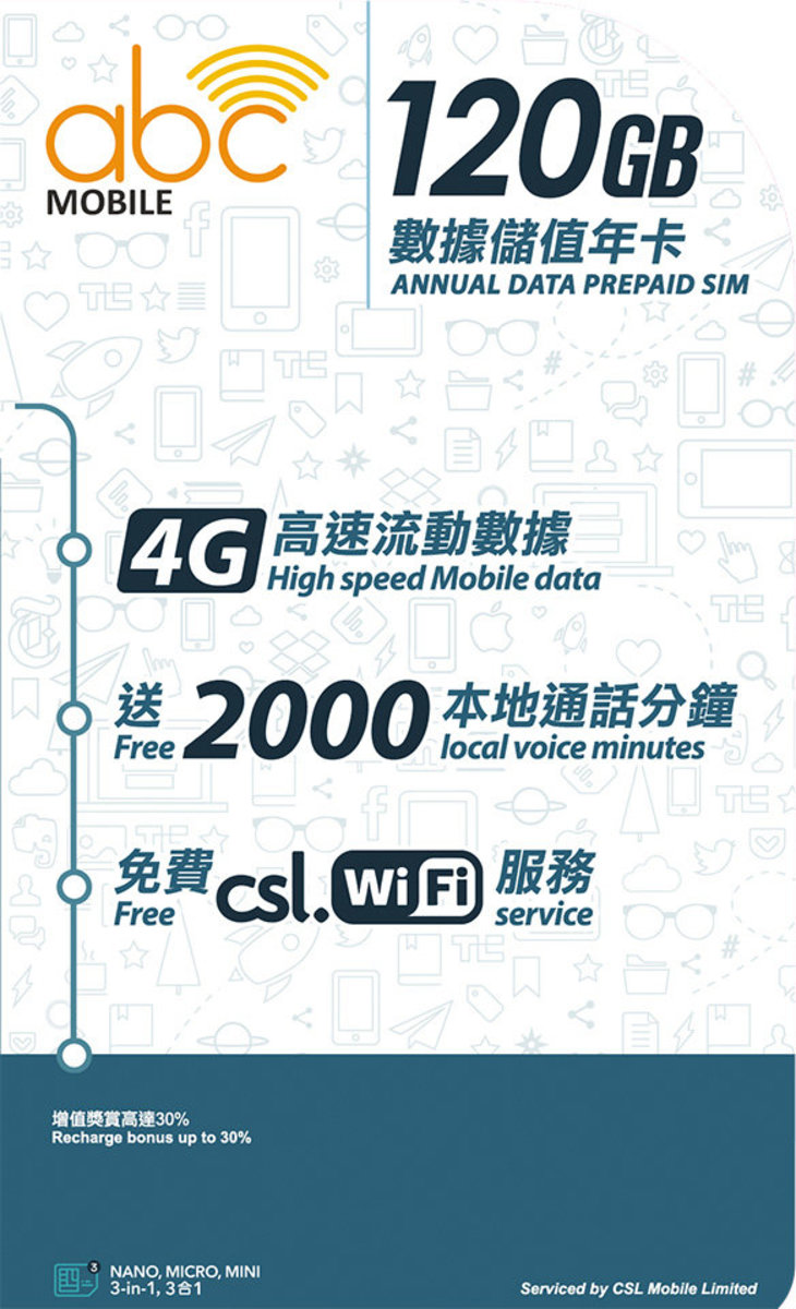 csl. 以多個品牌推出儲值卡產品,abc Mobile 正是其一,先後推出多款儲值卡,功能齊備,服務橫跨本地、外遊。免費 VoWiFi、csl. WiFi 服務為最大特色,後期更增設自助 MNP 攜號轉台,適合長期使用。