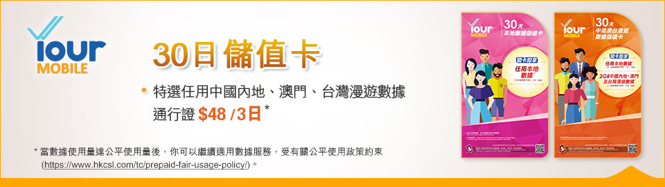 csl. 以多個品牌推出儲值卡產品,Your Mobile 正是其一,先後推出多款儲值卡,功能齊備,服務橫跨本地、外遊。免費 VoWiFi、csl. WiFi 服務為最大特色,後期更增設自助 MNP 攜號轉台,適合長期使用。