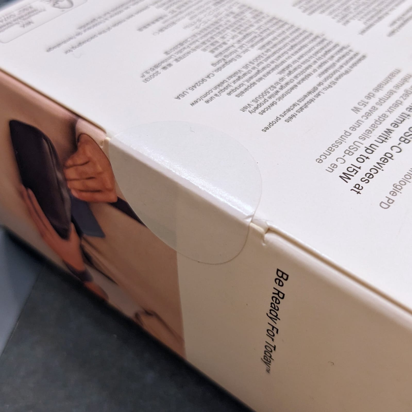 Belkin 心思相當細密,盒左右兩側跳上白色貼紙證明全新未開封,因此購買時應多加留意,若有撕開或裂痕則不應付款購買