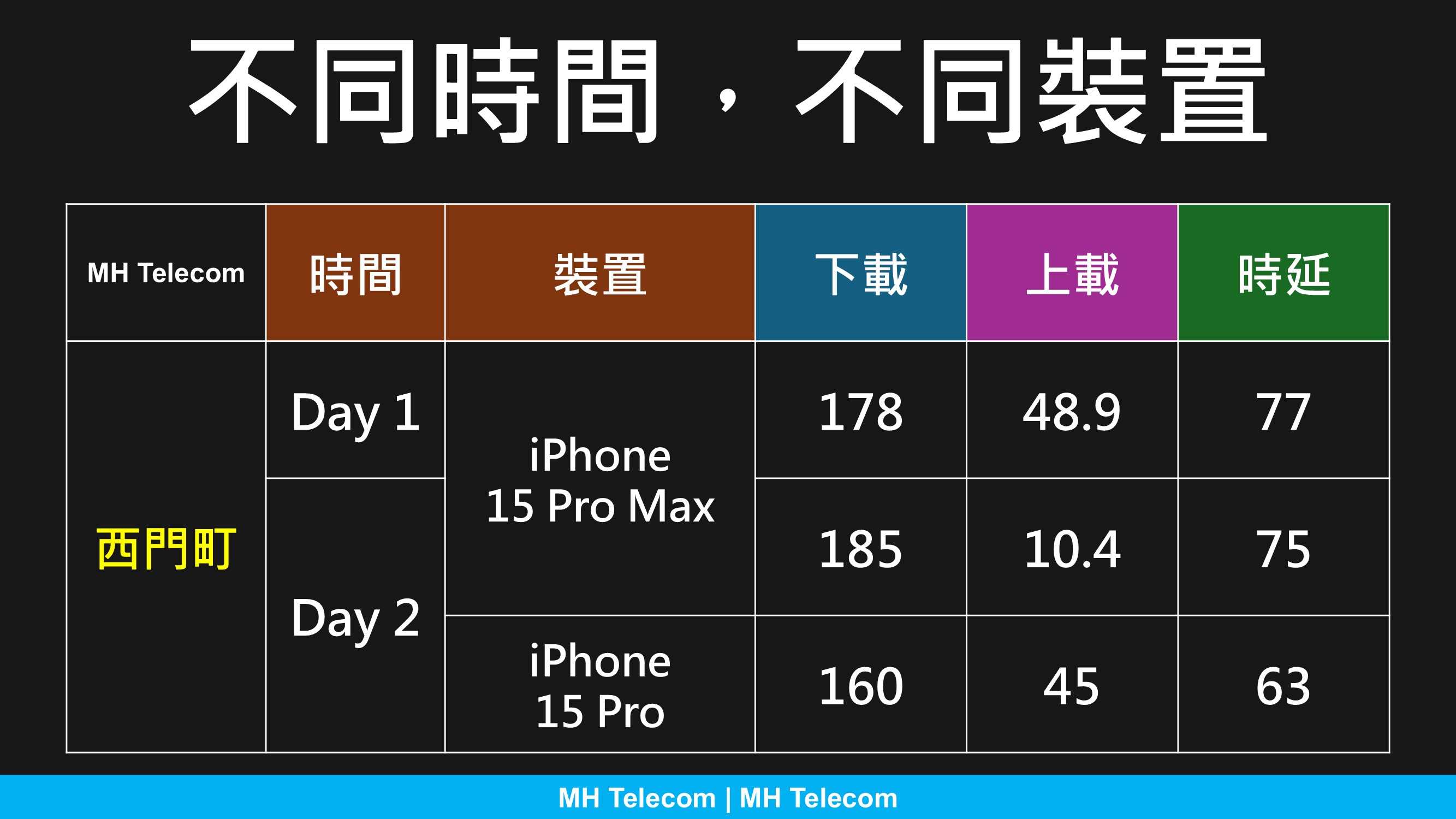 為進一步探討同一供應商於不同時間、不同裝置會否帶來不同網速表現,今次在西門町分開兩日以兩部不同 iPhone 測試,嘗試了解潛在差異。