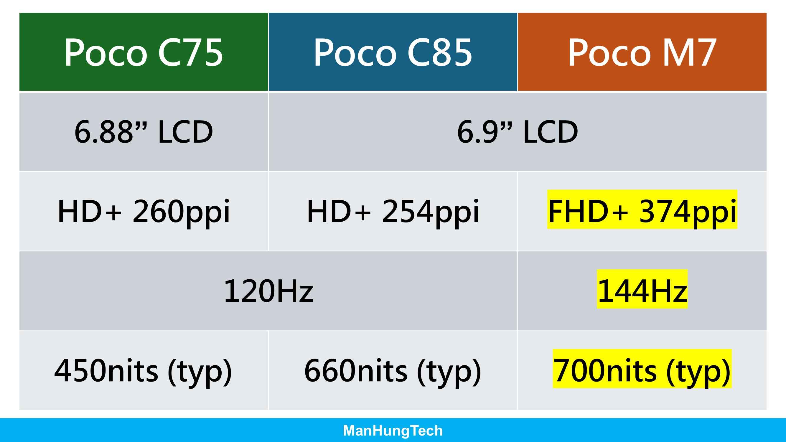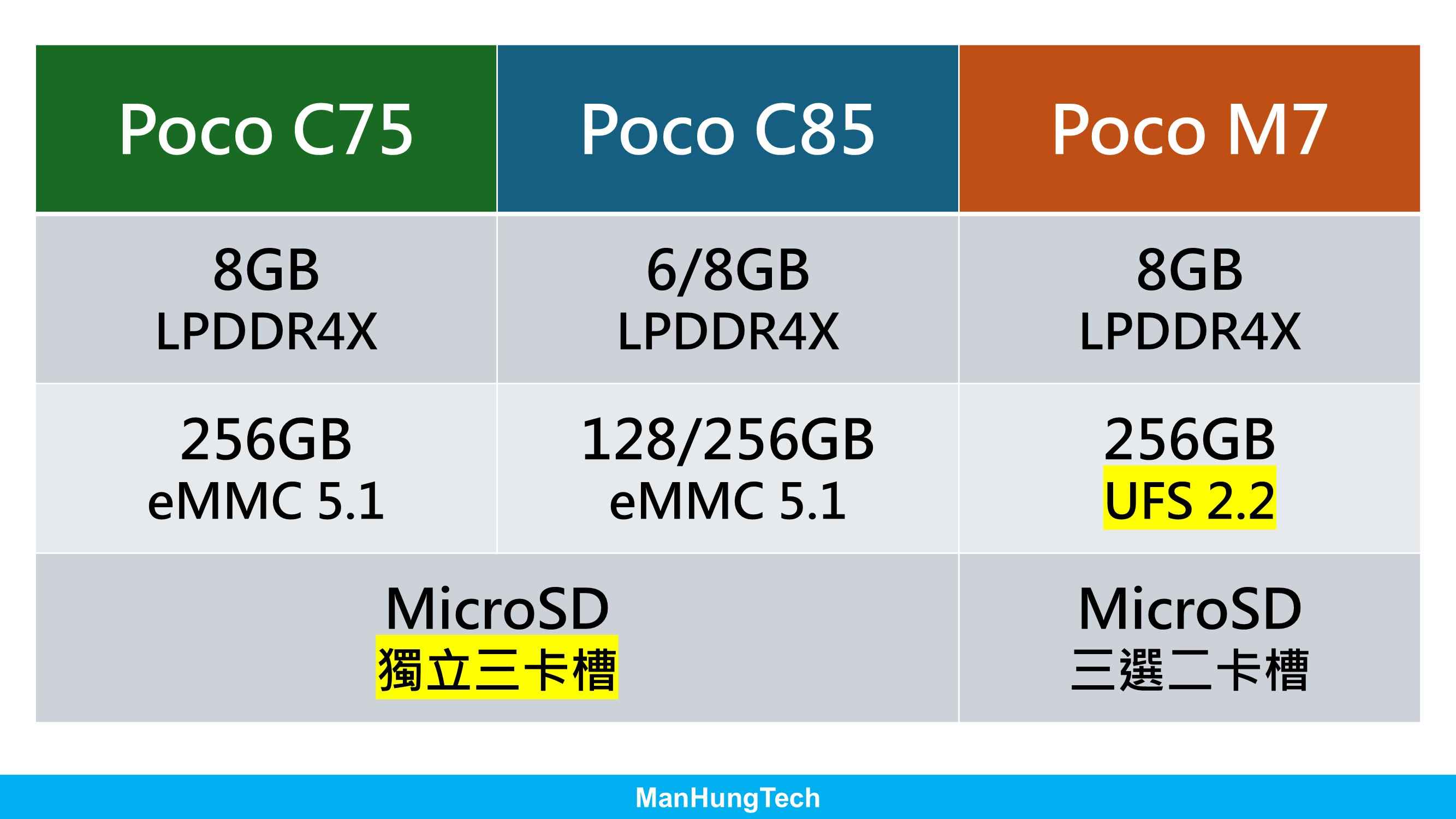 Poco C85 買機分析,與 Poco C75、Poco M7 規格比較