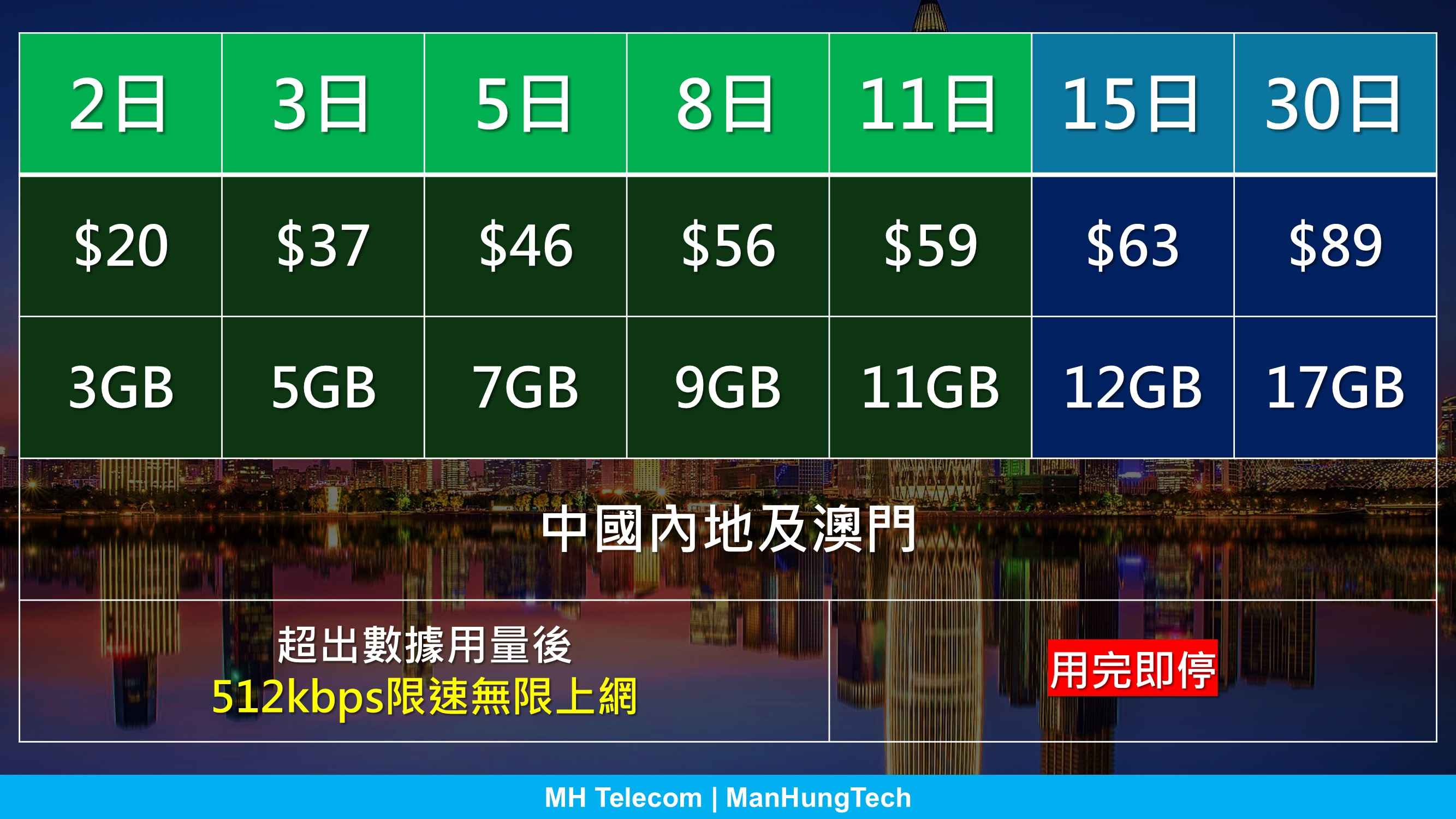如需中國內地、澳門漫遊數據,現時提供以下新卡選擇: