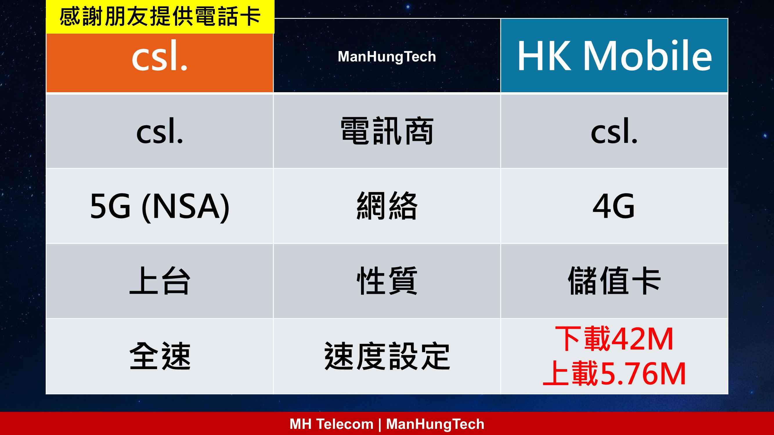 | MH Telecom | 5G上台 | HK Mobile |